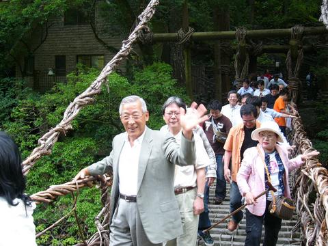 実際はかずらの中にワイヤーが入っており、安全とのことであったが、渡る際の揺れが尋常ではないため、思わず足がすくんで中腰になる。