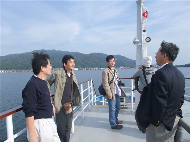 観光船を下り、リフト、ケーブルで展望台に上って、天の橋立の雄大な景色を楽しみました。と、さらに上方から「おーい」等の大きな声。何か?と声の方を見上げると、いつの間にかその上の成相寺まで山を登っていた上野勝会員たちでした。